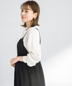 ・前後で方の切り替えが異なり、ボリュームスリーブは袖口のベルトで絞ってギャザーをプラス。