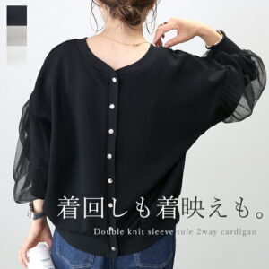 ニュアンス柄の刺繍が目を惹く、ストレッチチュール・2way・トップスが新登場!程よい透け感とさらりとした風合いの素材で、伸縮性もあり、ストレスフリーな着心地。