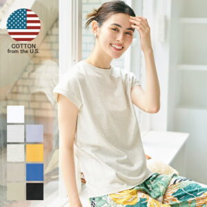 大人のエアリーTシャツ 開きすぎないクルーネックが気になる首元をカバーし、こなれた印象に。