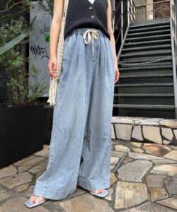 タイトなシルエットながらもウエスト周りの伸縮が楽な着心地を叶えます。