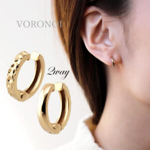 【“THE EDGE”カッティングフープピアス】 ピアス表面のカットにこだわってデザインされており、様々な角度から存在感を放ちます。