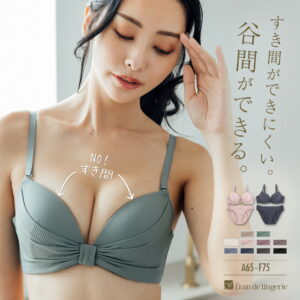 余分な脇肉をホールドする脇高設計で、レース生地がバストを包み込むように中心に寄せ、優しく谷間をメイクします。