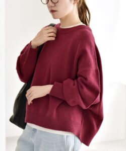 さらりとした生地なので、ごわつきやすいニットを重ねていただいても着脱しやすいです。